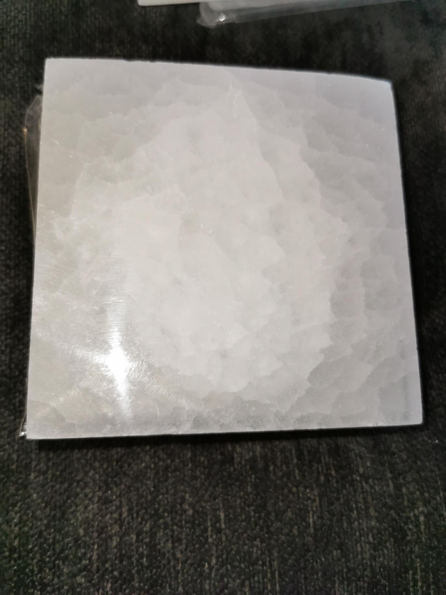 La Sélénite est une pierre très calme qui installe une paix profonde. Elle aide à l'intuition et l'estime de soi. En plus de ses vertus, la plaque de Sélénite permet de recharger tous vos bracelets et pierres roulées.